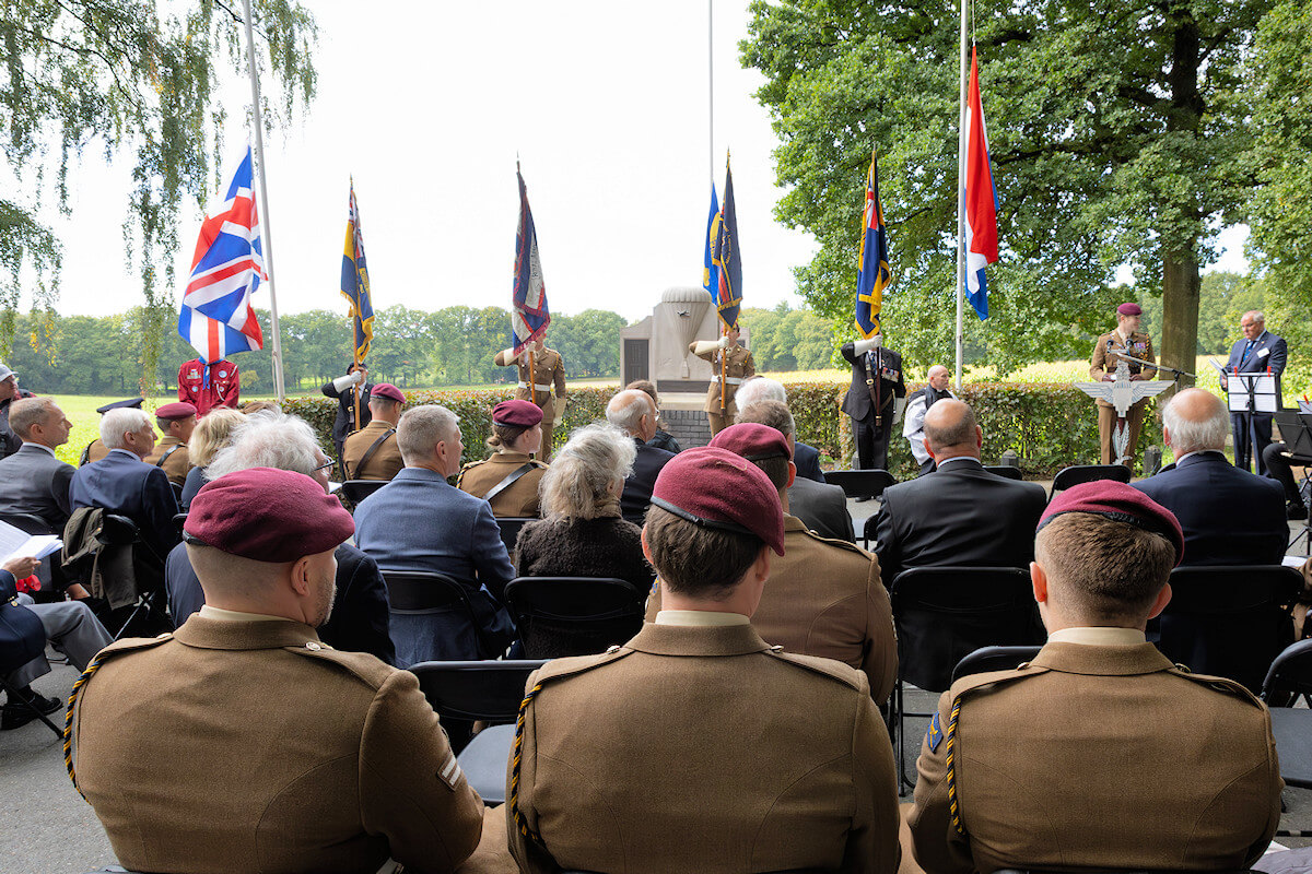 Remembrance service at the monument for Air Despatchers active during the Battle of Arnhem, who gave their lives dropping supplies.