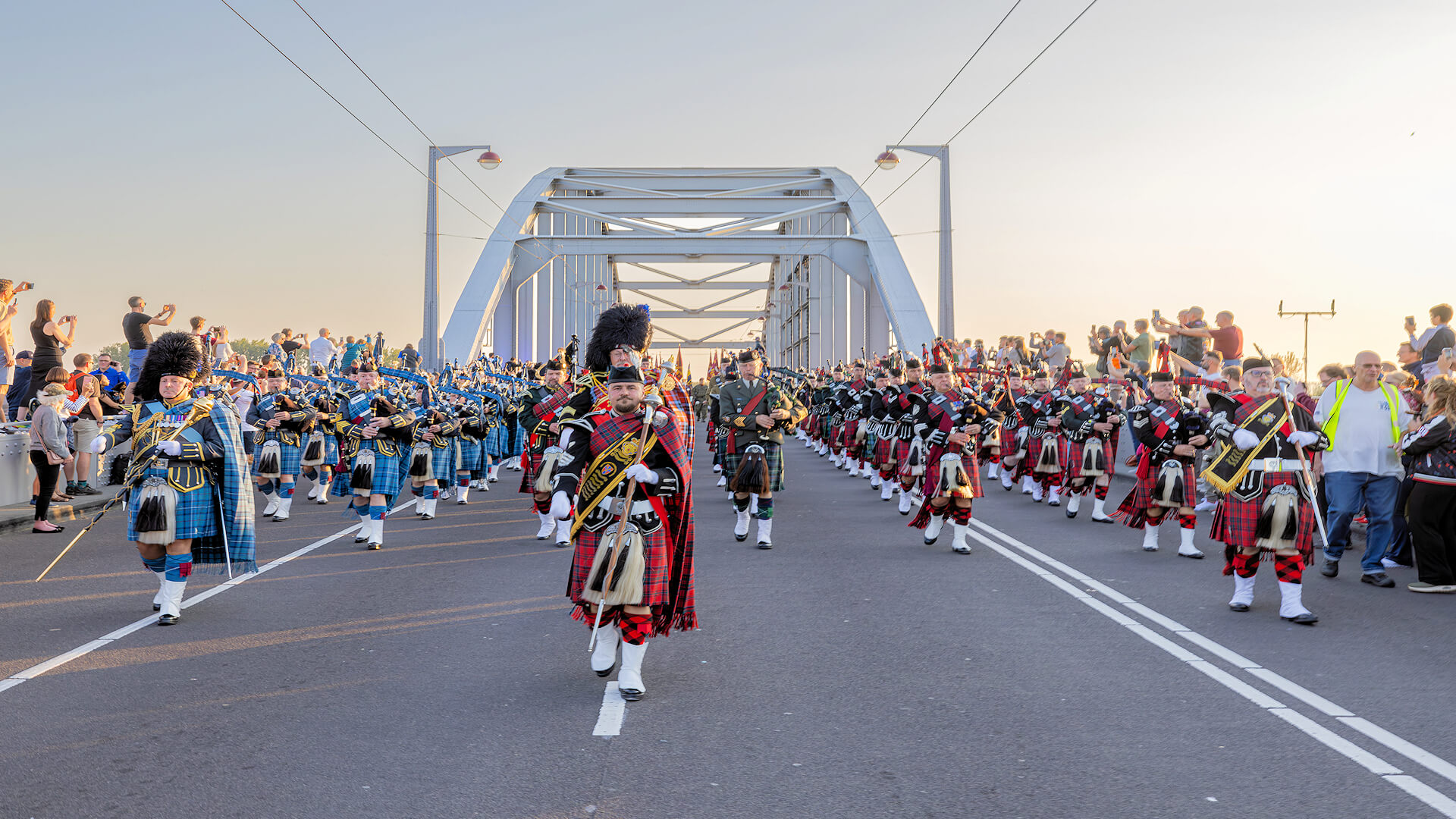 The event is preceded by the ‘March over the Bridge’ whereby massed Pipes and Drums RBL The Netherlands and Standard bearers cross the famous John Frost Bridge in a slow march into Arnhem. The ceremony is traditionally accompanied by the Arnhem Scouting Band.